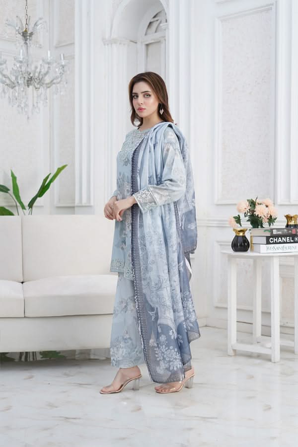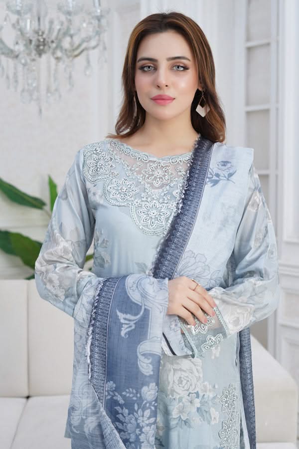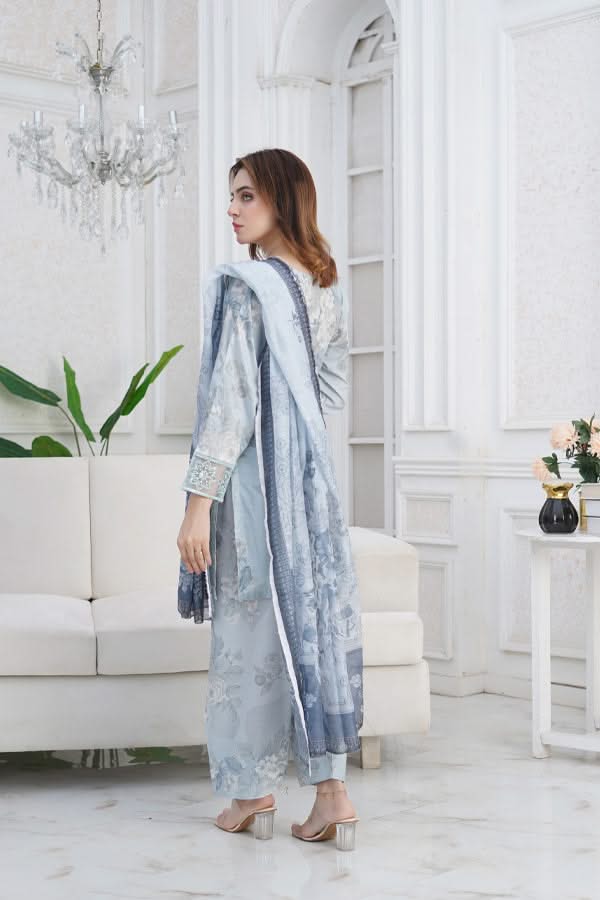 Our fabric is crafted from 100% pure cotton lawn, celebrated for its lightweight, breathable, and luxuriously soft nature. With its fine, smooth texture and graceful drape, this fabric offers effortless elegance while ensuring all-day comfort. Designed to keep you cool and fresh in warm weather, it blends timeless sophistication with natural ease, making it a perfect choice for both everyday wear and special occasions.