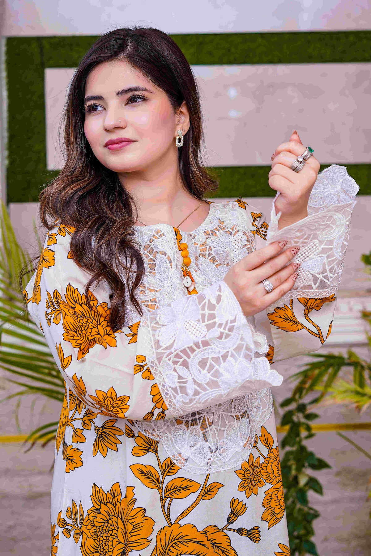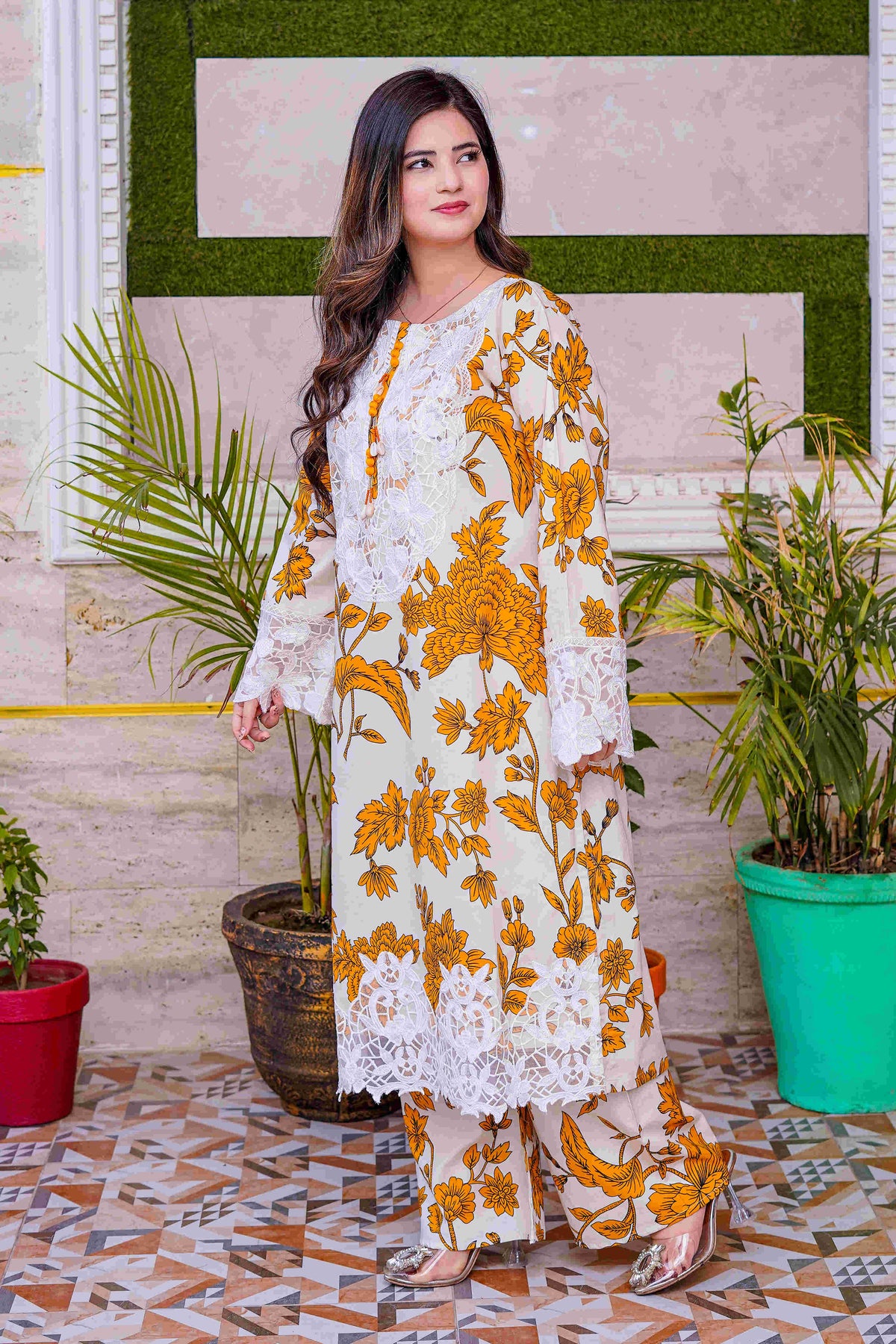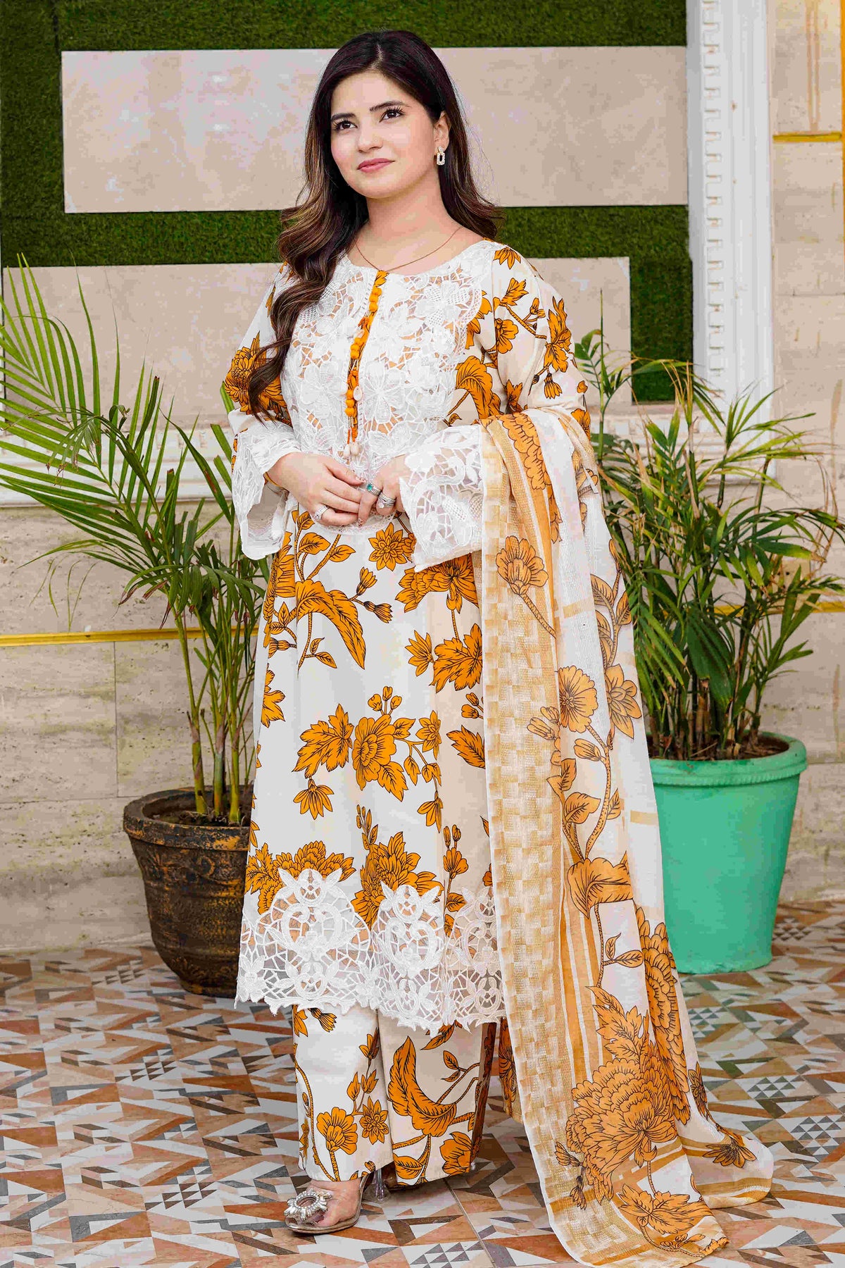 Refresh your summer wardrobe with our Serenity 3-Piece Suit, a beautifully designed ensemble crafted from premium cotton lawn. Rooted in traditional Pakistani elegance, this occasion-ready outfit blends timeless charm with modern sophistication. The soft pastel peach hue brings a breezy vibrance, while the lightweight, breathable fabric ensures all-day comfort.